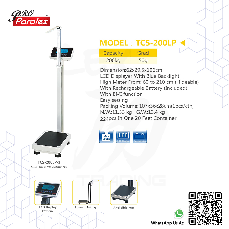 TCS-200LP Digital Platform Scale with BMI + LCD Display + Height Rod